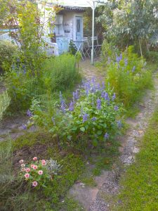 粘土質の土なので、門柱の下に植えたヒメイワダレ草がなかなか広がりませんが、