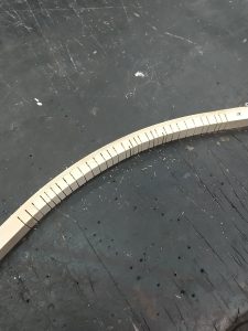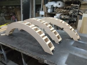 まず、ベニヤをアールにカットして本体の足を作ります