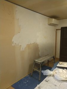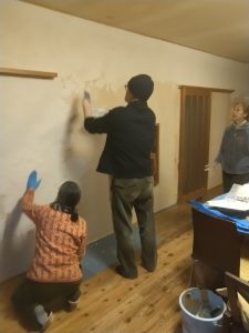 1週目に納品に行くと、リビングの壁がくすんできたので漆喰を塗ってほしいと言われたので