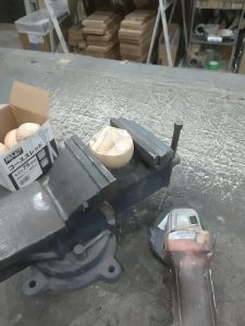 最後に欄干のギボシには木球を使いますが、丸いままではギボシに見えないので、