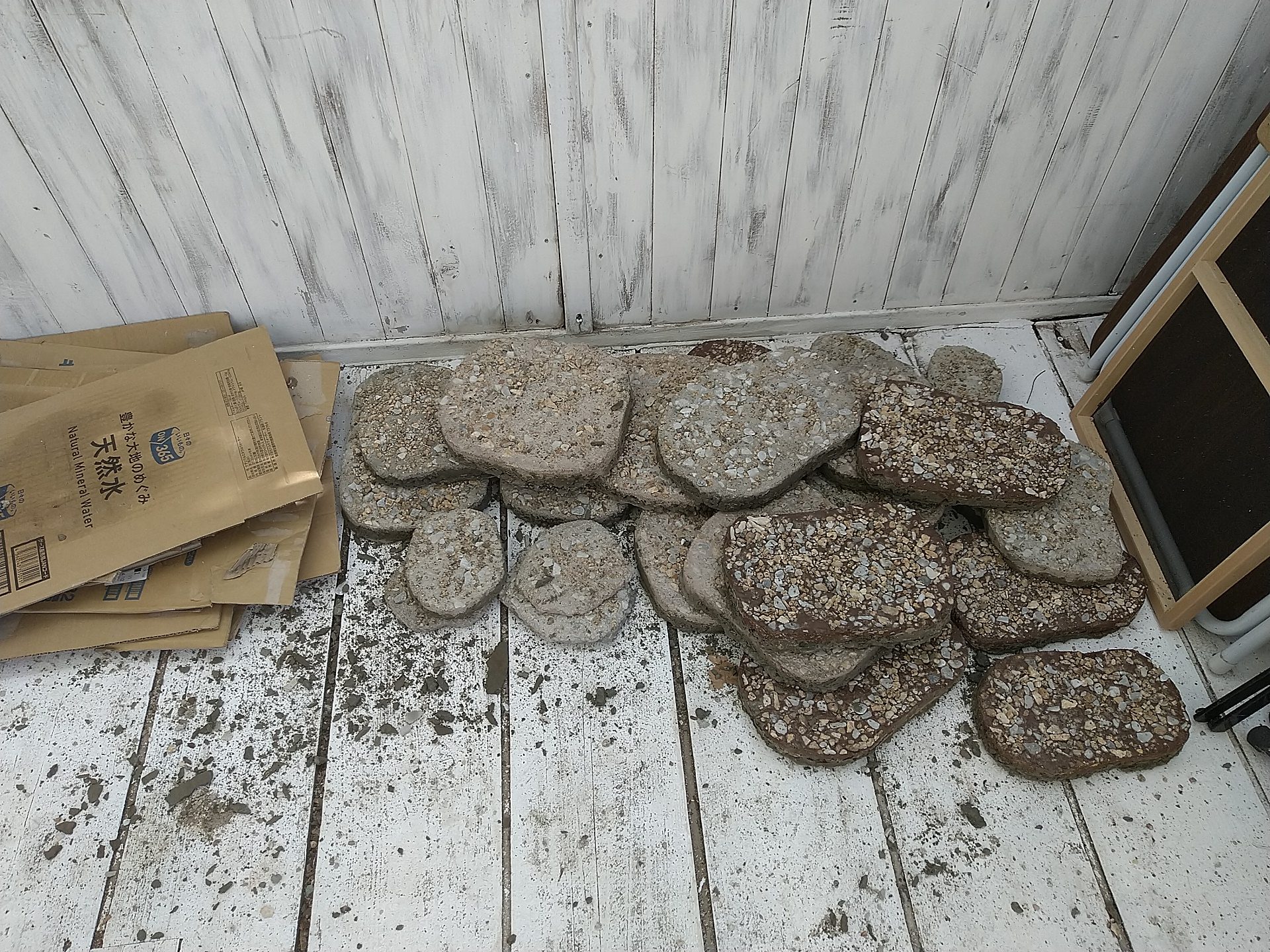 比良の庭用に作った敷石のセメントが余ってたので、固まってしまう前にまた擬岩を作りました