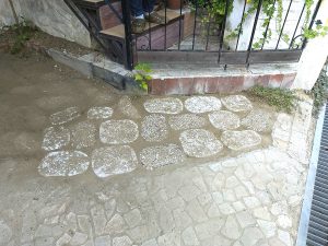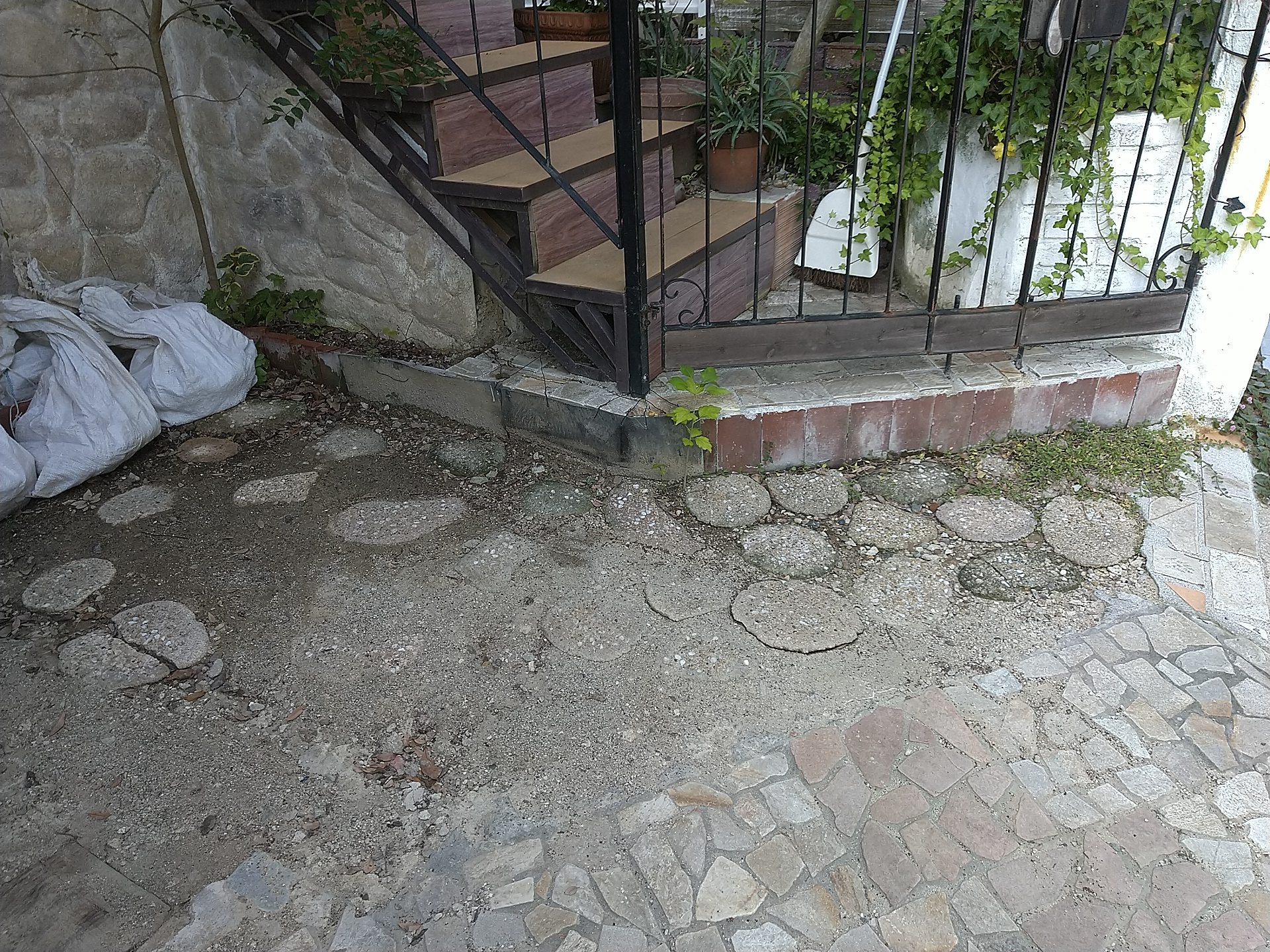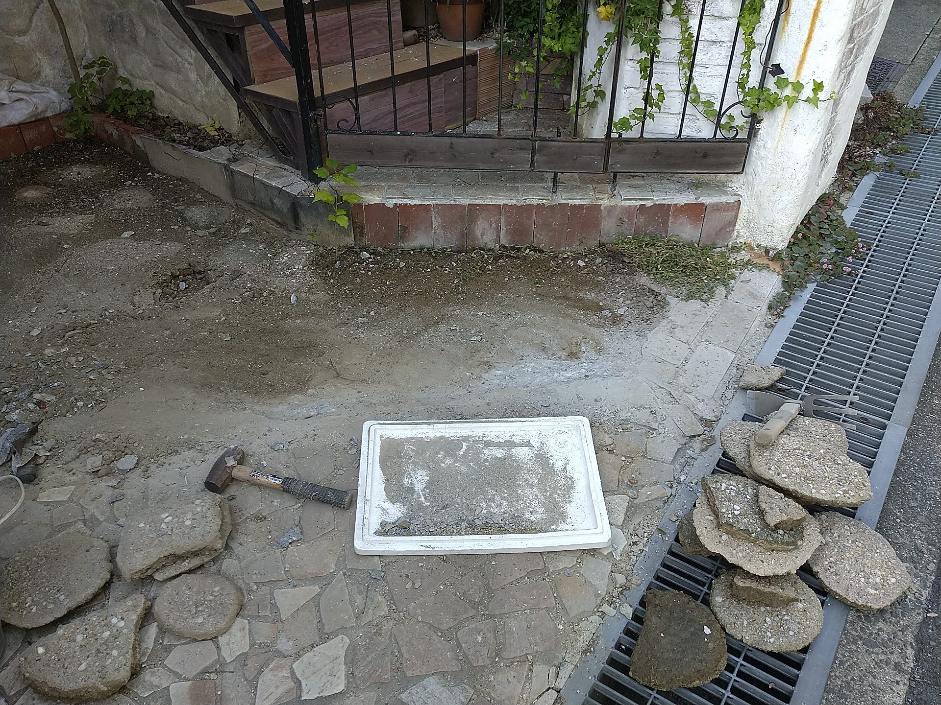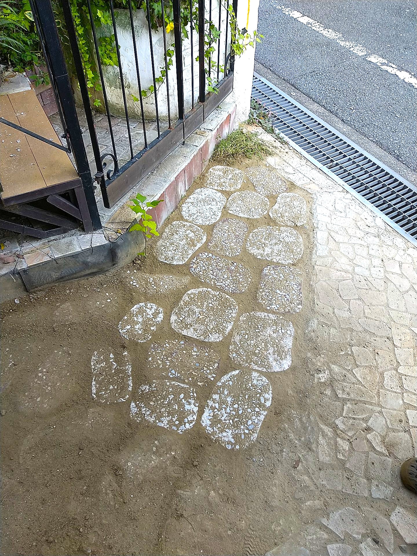 自宅の門前の敷石が、以前作った丸い石だったために、下が凸凹して歩きにくかったので