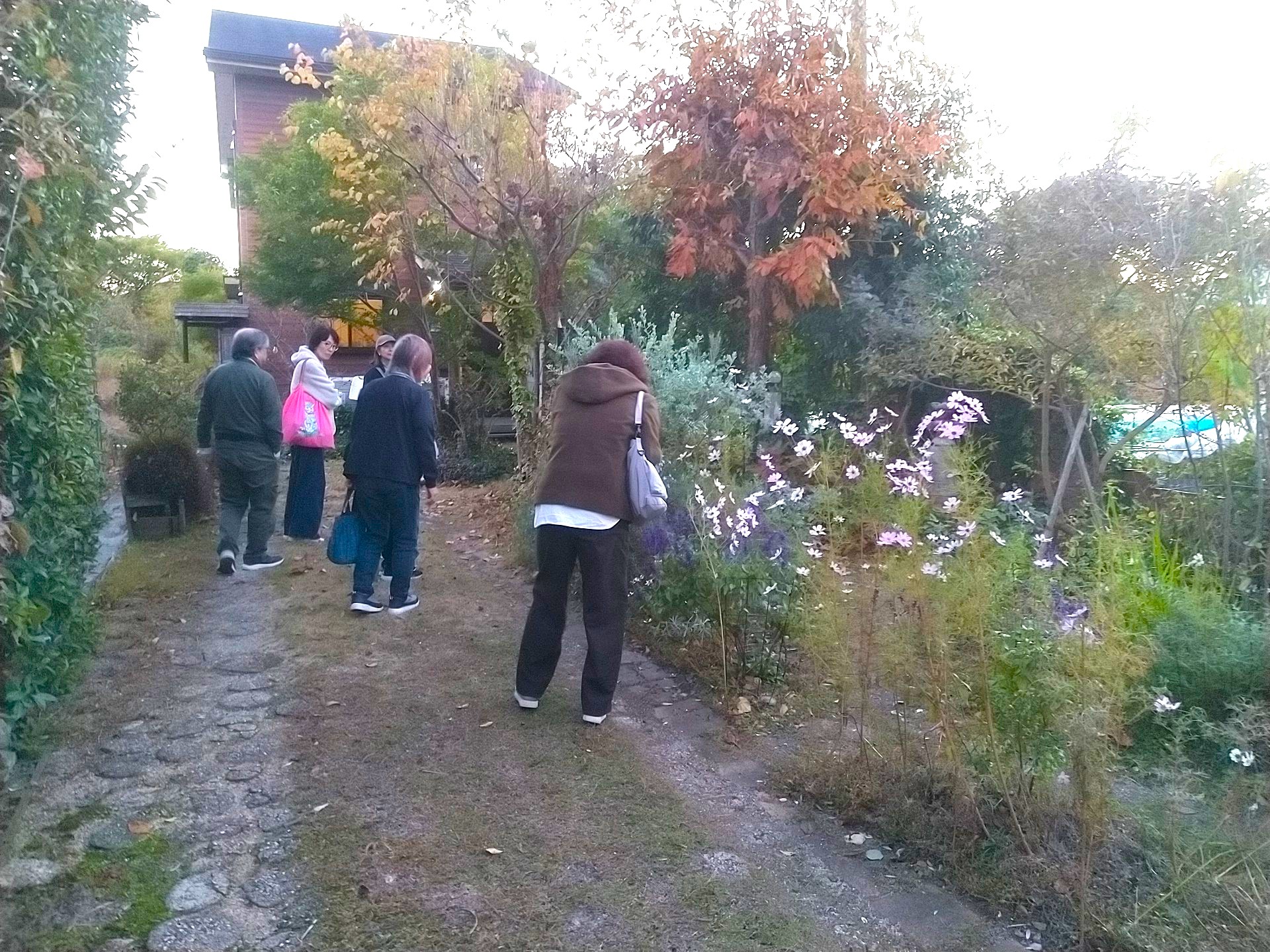 坂本のセカンドに帰ってからは、コスモスが満開のお庭とお茶室を体験してもらって