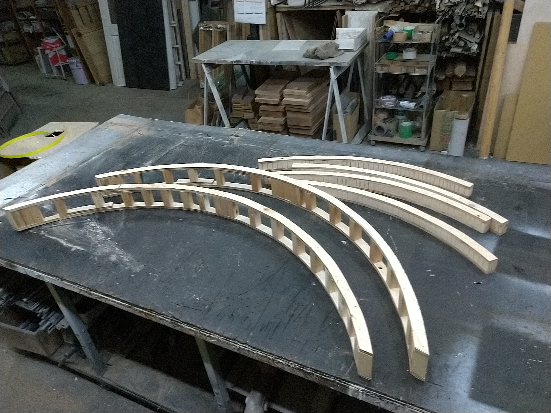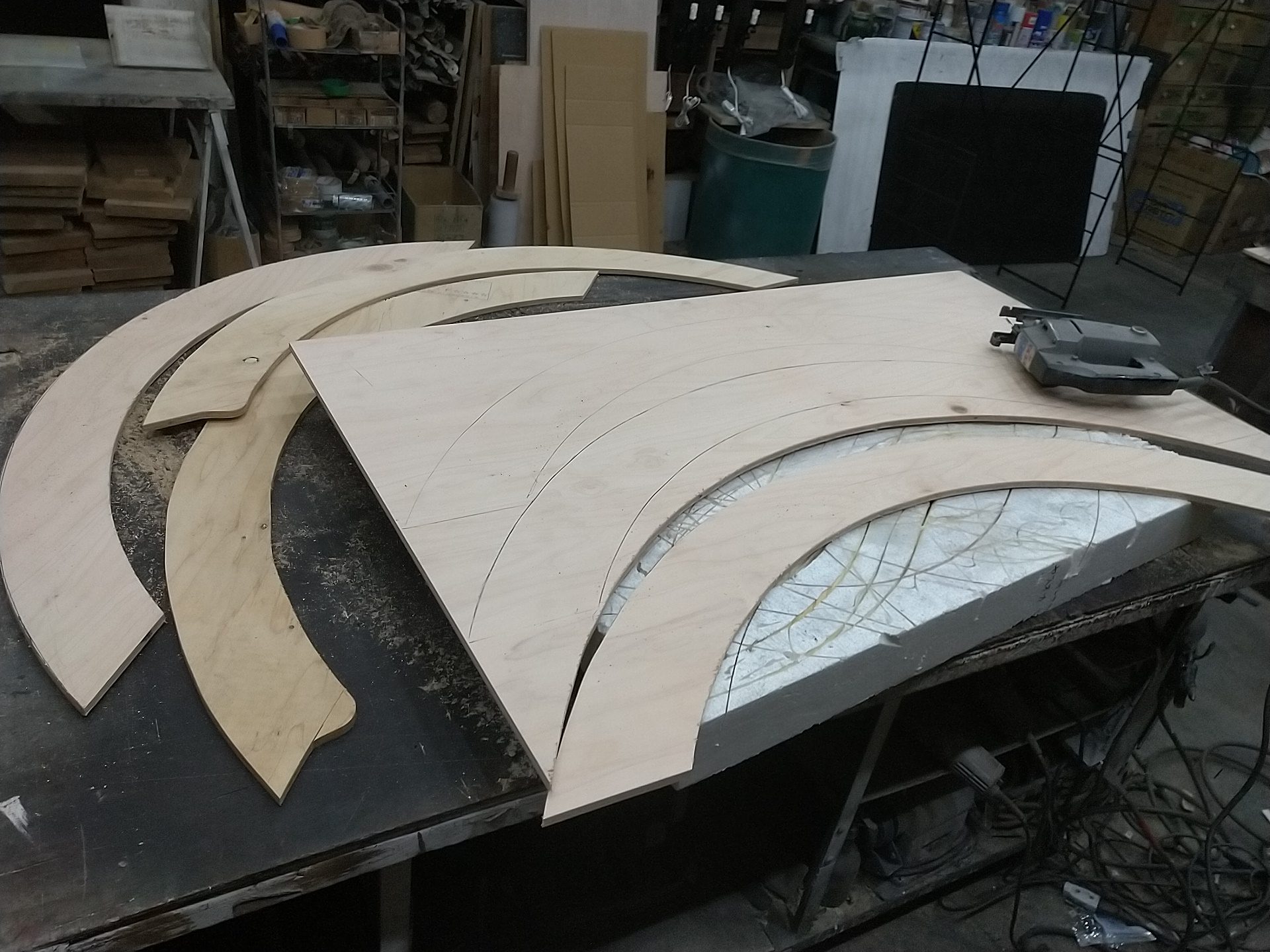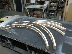 まず、ベニヤをアールにカットして本体の足を作ります