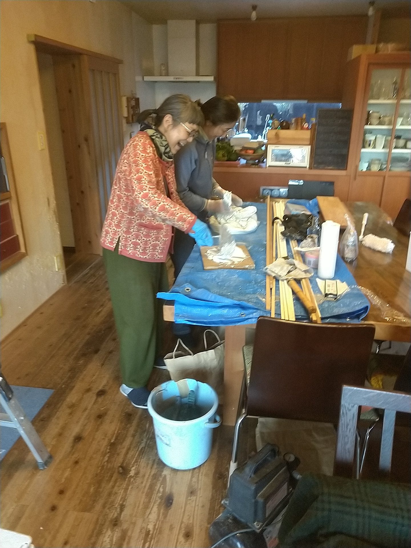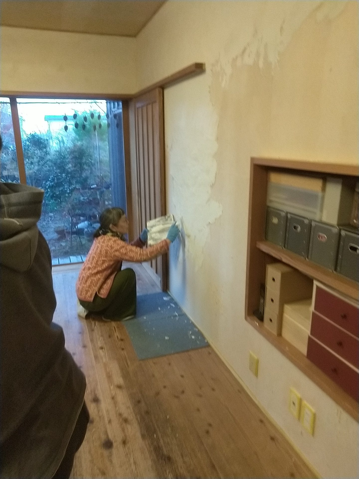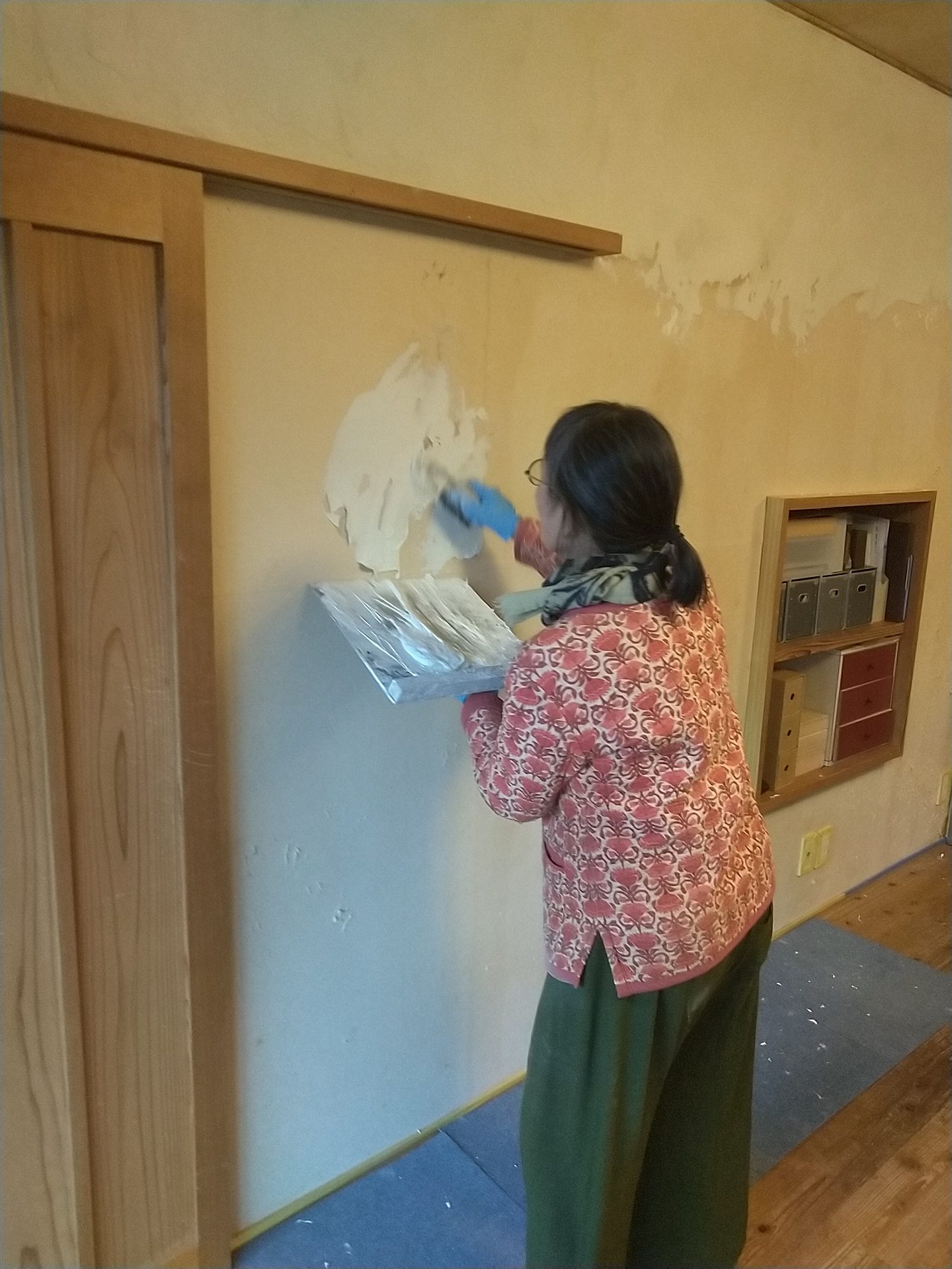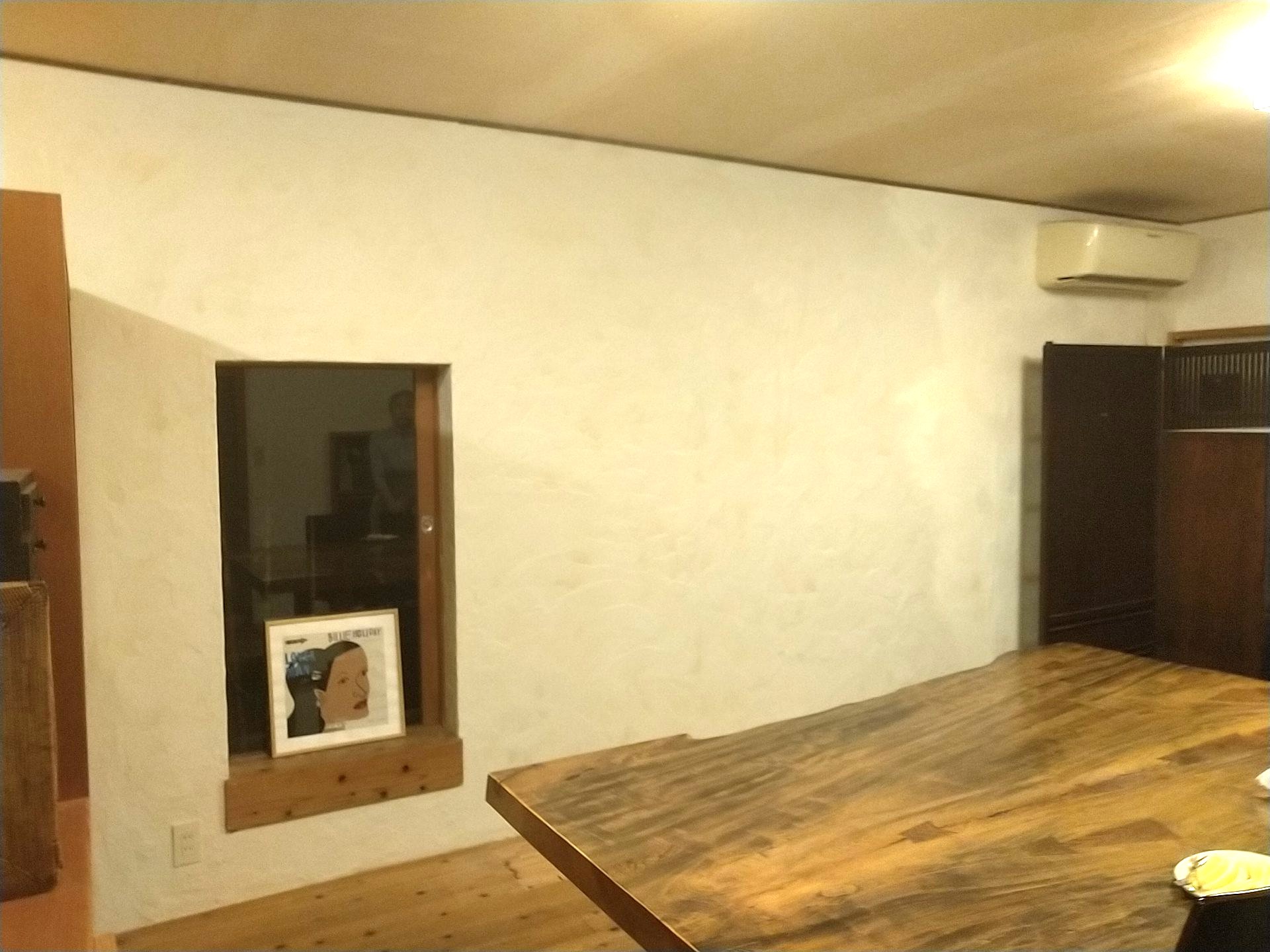 1週目に納品に行くと、リビングの壁がくすんできたので漆喰を塗ってほしいと言われたので