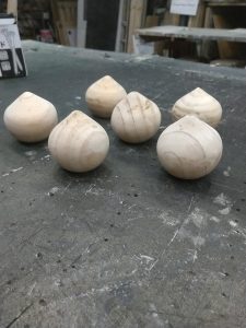最後に欄干のギボシには木球を使いますが、丸いままではギボシに見えないので、