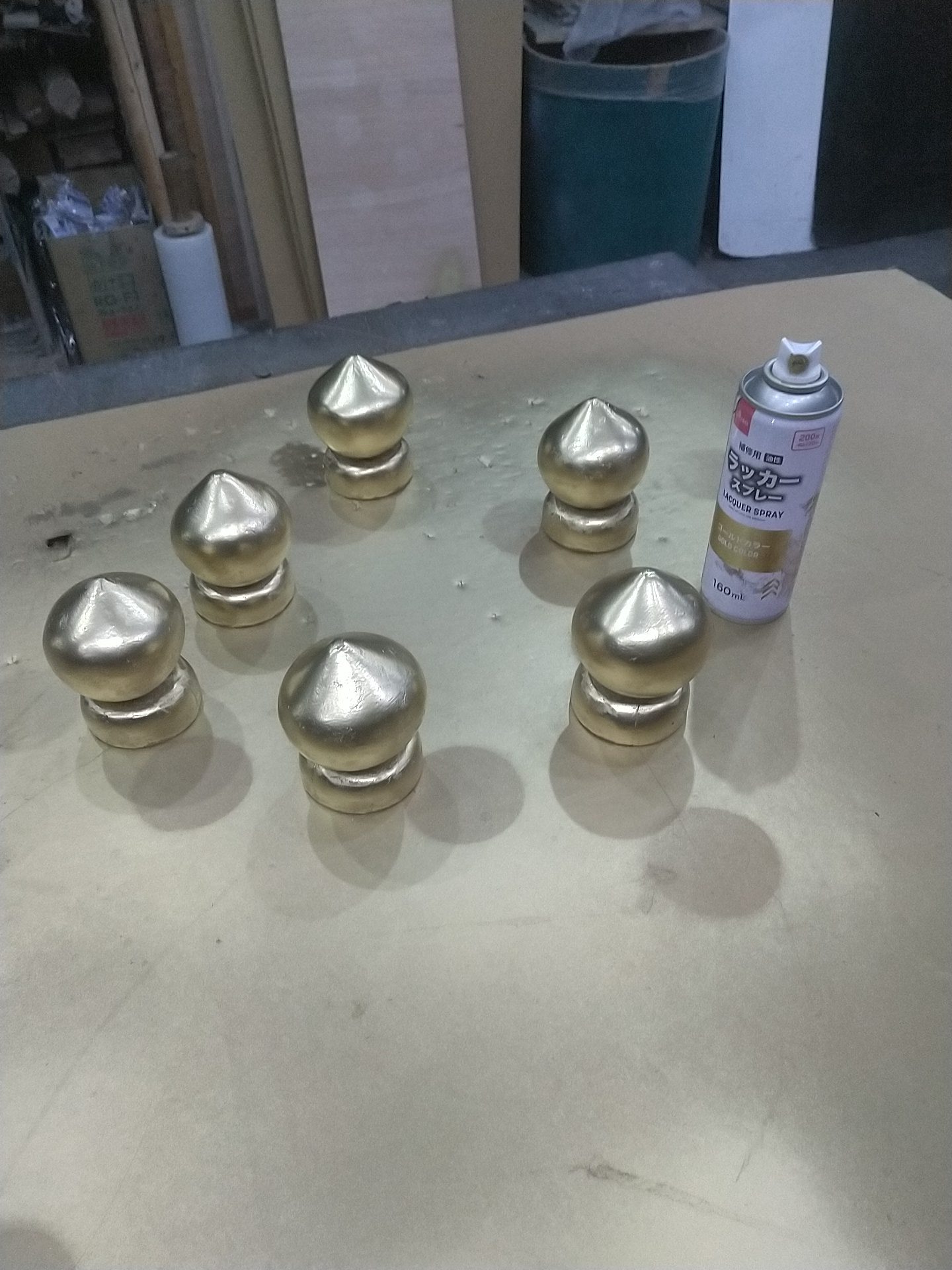 金色のラッカーは、ダイソーの200円スプレーがなぜか一番色が乗ります