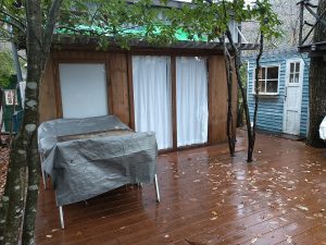 次は掃き出し窓の外にデッキを作るそうですが、200坪近くある庭が全部できるまでは