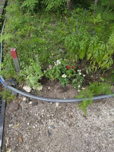粘土質の土なので、門柱の下に植えたヒメイワダレ草がなかなか広がりませんが、
