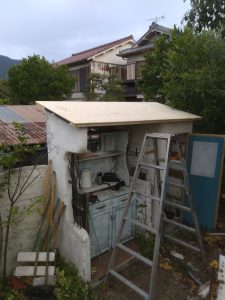 今回は上のボーダー(サイン看板)が前回より大きくなったので、上げるのにヤフオクで買った