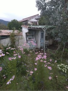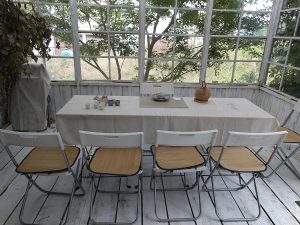 坂本のセカンドに帰ってからは、コスモスが満開のお庭とお茶室を体験してもらって