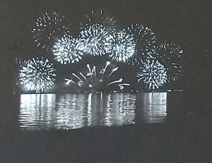 湖上のシークレット花火も湖岸の特等席で見れて、皆さん帰り道に