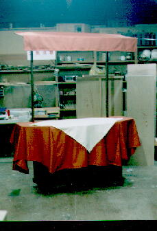 毎日出し入れするため、折りたたみ式です。手作りシュークリームにあわせて、什器も手作りです。